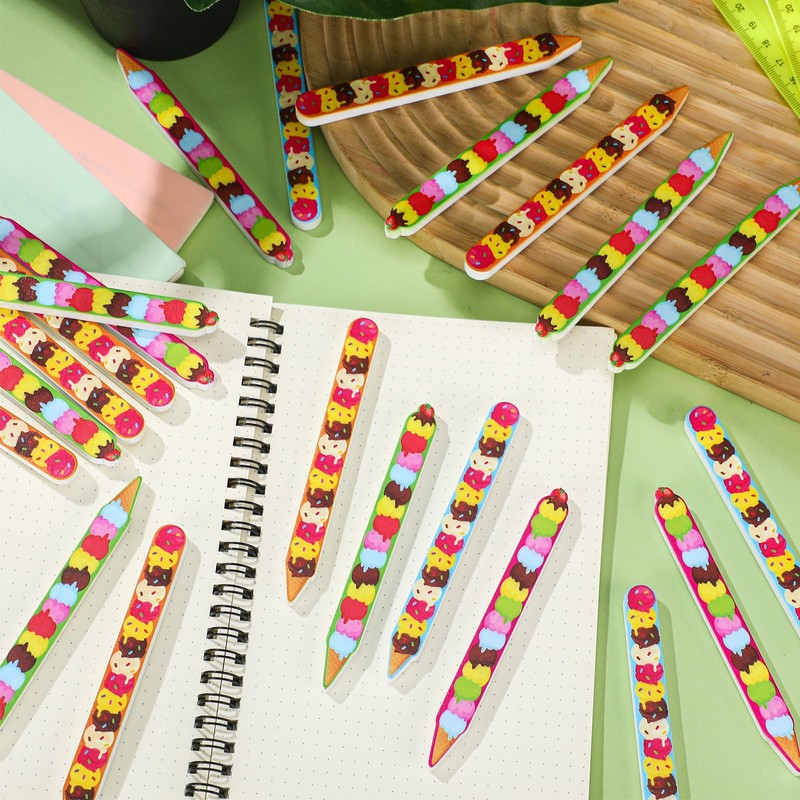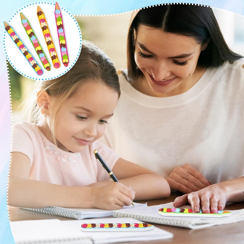 • Ice Cream Themed Design: the writing tools for kids are designed with patterns of ice cream in diverse styles and background in pink, yellow, blue and green, vivid and adorable, and the bright and multiple colors create a joyous atmosphere