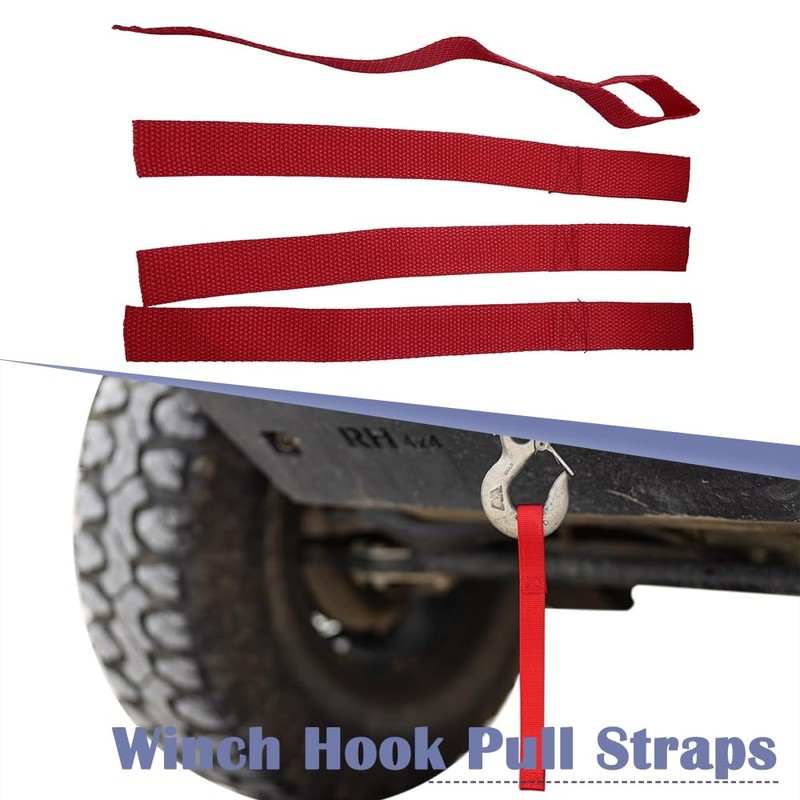 - 【You Can Get】4PCS Winch Hook Pull Straps for Cars. It Is Small and Lightweight, Easy to Carry and Store, Good Replacement for Car Winch Hook Pull Straps.