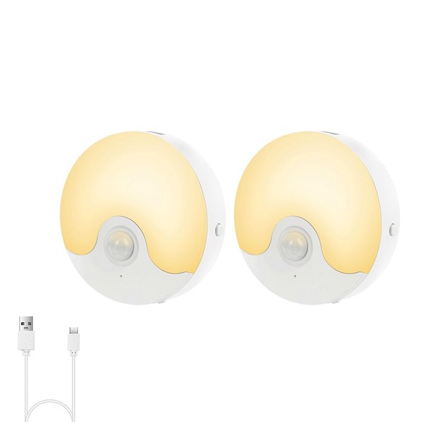 Rechargeable Mini Night Light, Warm White Motion Sensor Light, Stick-on LED Closet Light, Stick Anywhere, Wall-Mounted Dimmable Brightness for Wall, Stairs, Cabinet, Hallway, 2Pack