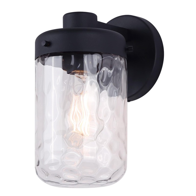 Juno Outdoor Downlight – Black Finish, Clear Textured Glass, 1-Light Exterior Wall Fixture– Modern Outdoor Lighting for Patio, Entryway, Garden