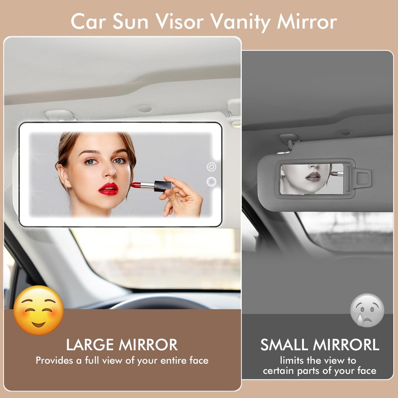 - 【Clear visibility】 Our makeup mirror for car visor are large, high-definition mirrors with a wide field of view. This makes it easier to groom your eyebrows, apply eyeliner, or apply full facial makeup with precision and clarity. The mirror's distortion-free surface ensures you see a true reflection of your face, helping you achieve perfect makeup results every time.