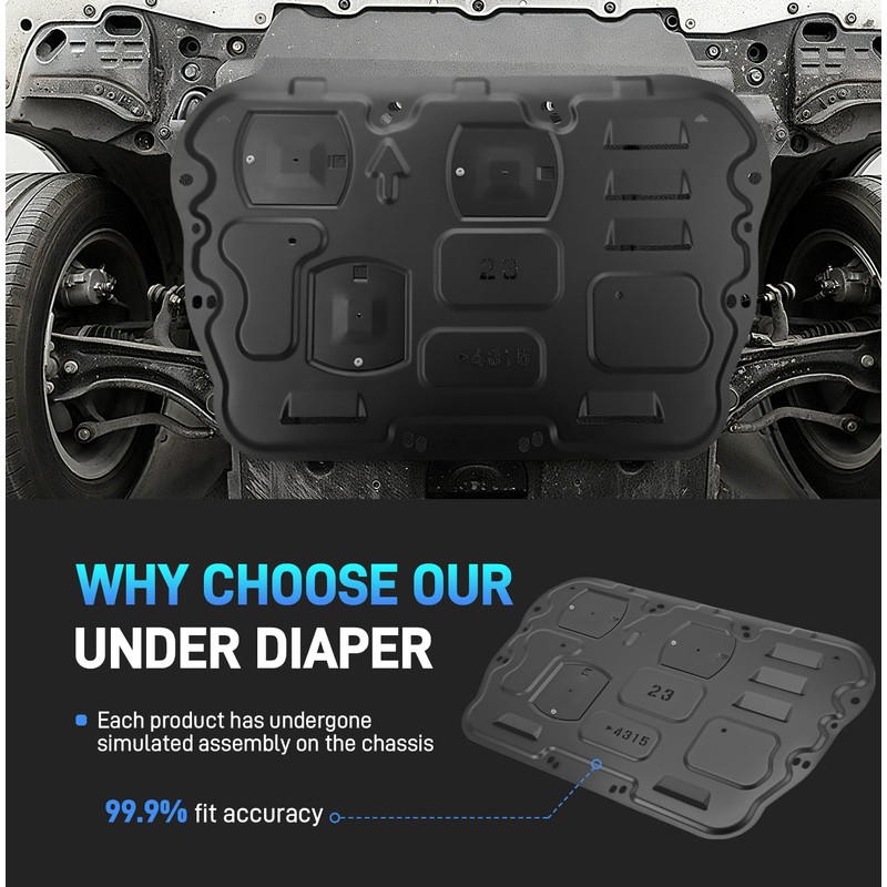 - [Enhanced Safety]:Prevents water and debris from accumulating in vulnerable areas, protecting your vehicle from corrosion and rust. Our engine splash guard helps maintain the vehicle's integrity and extends its service life