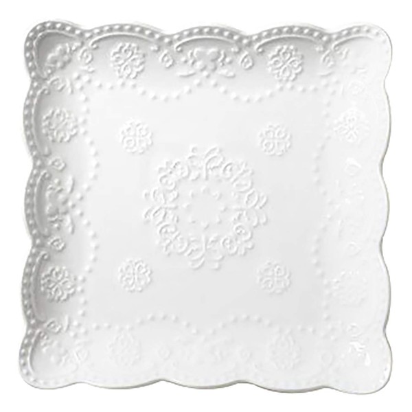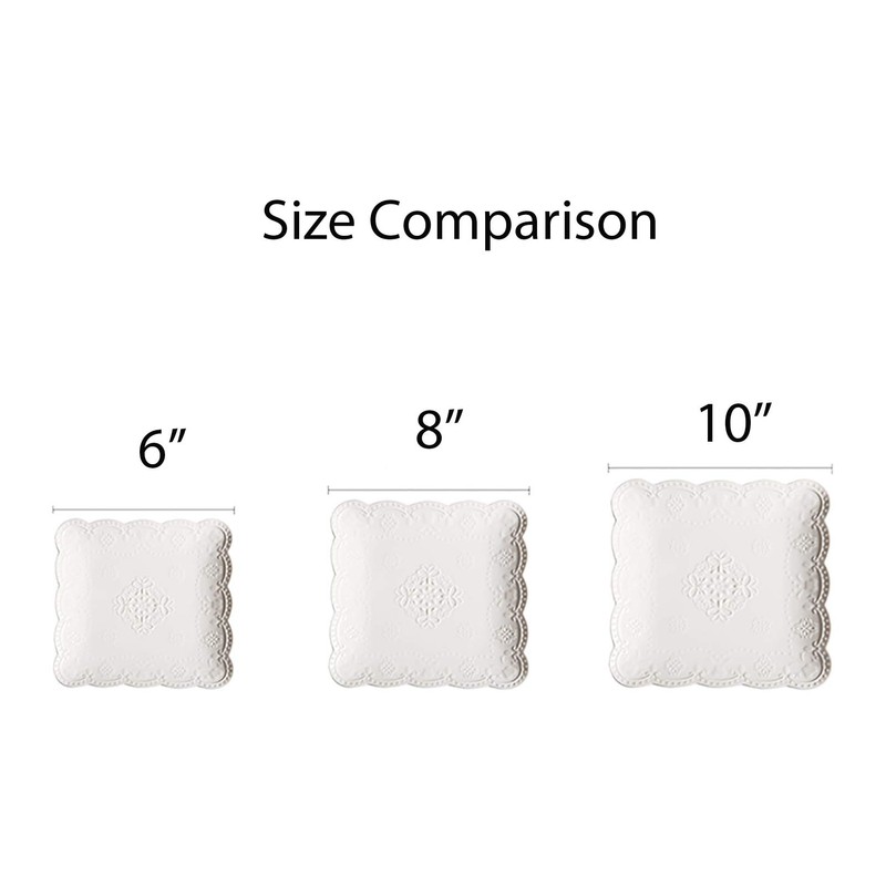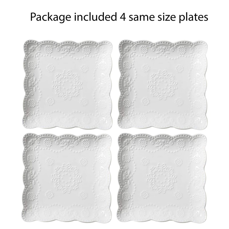 Jusalpha 4 Pack- Square Embossed Lace Ceramic Plate-Tableware Dish Set- 4 Pieces (6 Inches, White)