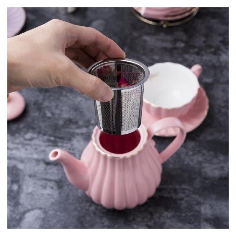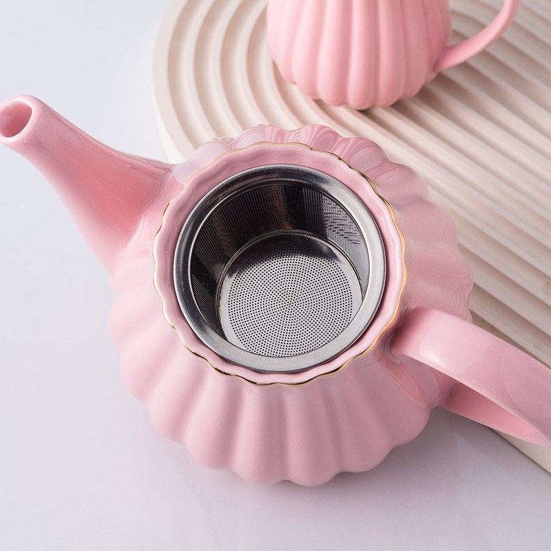 Jusalpha Pink Porcelain Teapot, Ceramic Teapot with Removable Stainless Steel Infuser, Blooming & Loose Leaf Teapot, Home Decor - 28 Ounce (Pink, 28 OZ)