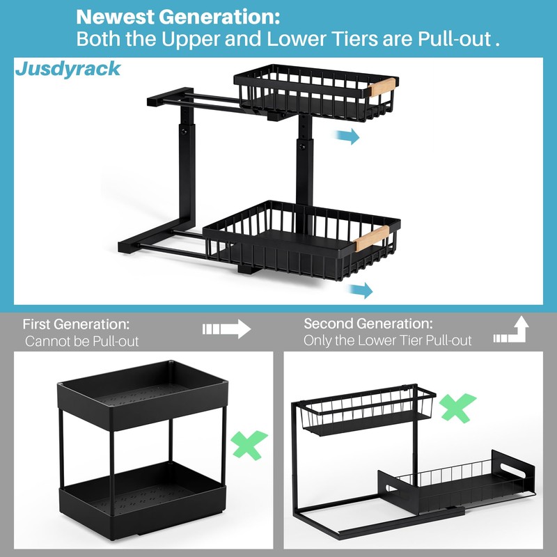 - Our third-generation organizer is built with extra-thick metal material, providing superior load-bearing capacity. Unlike the first and second generations, which had limitations, this new version offers significant improvements:First Generation: Made of plastic, with a non-pullout design and no adjustable height.Second Generation: Constructed from metal, but the upper layer couldn't be pulled out, and the height was fixed.