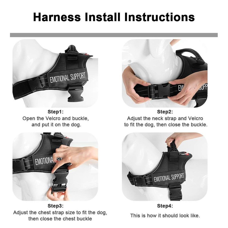 • MAXIMUM COMFORT - With padded chest straps and a breathable mesh lining, easy-to-adjust locking straps for a custom fitting, this ESA dog harness provides the maximum comfort that your working companion deserves. Includes a rubber padded top-mounted grip handle to give you total control over your dog when faced with an emergency situation. Give you and your dog a hassle-free experience in public areas! Made from the strongest materials on the market.