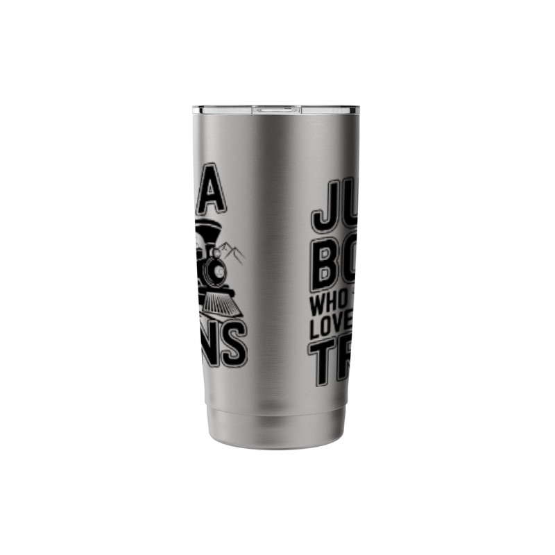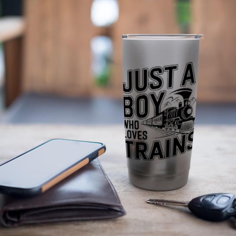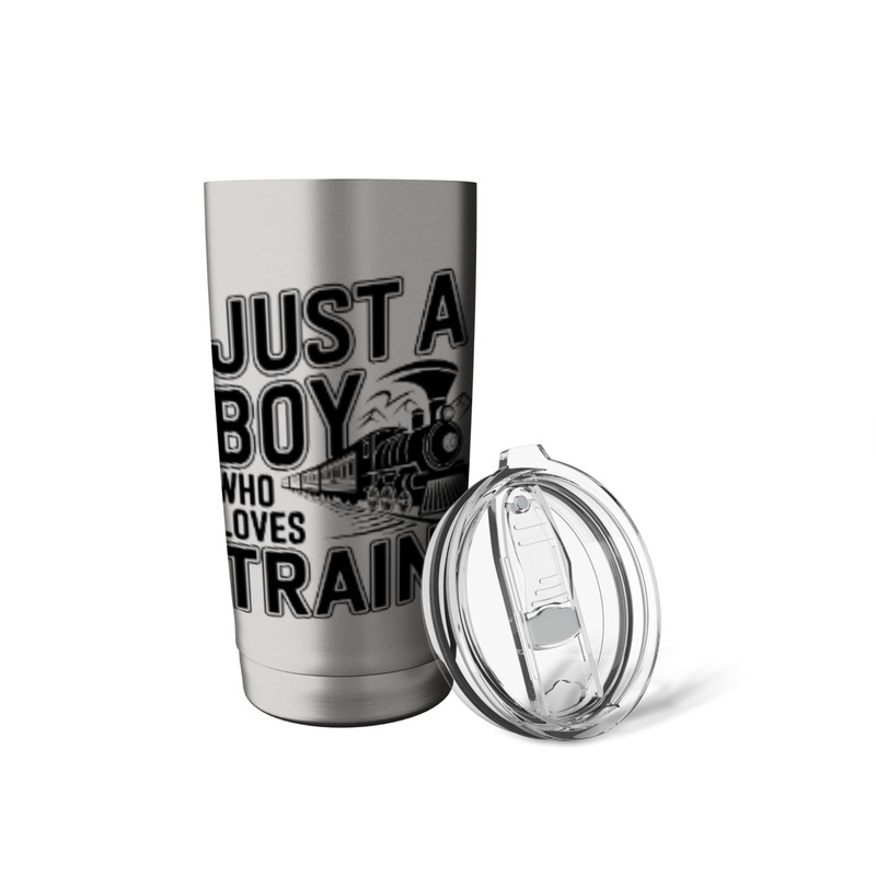 Just a Boy Who Loves Trains Funny Retro Steam Engine Stainless Steel Insulated Tumbler