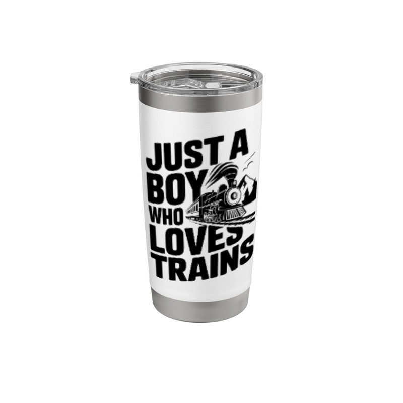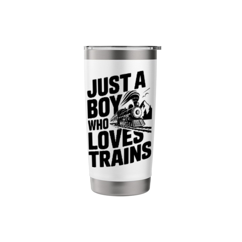 Just a Boy Who Loves Trains Funny Retro Steam Engine Stainless Steel Insulated Tumbler