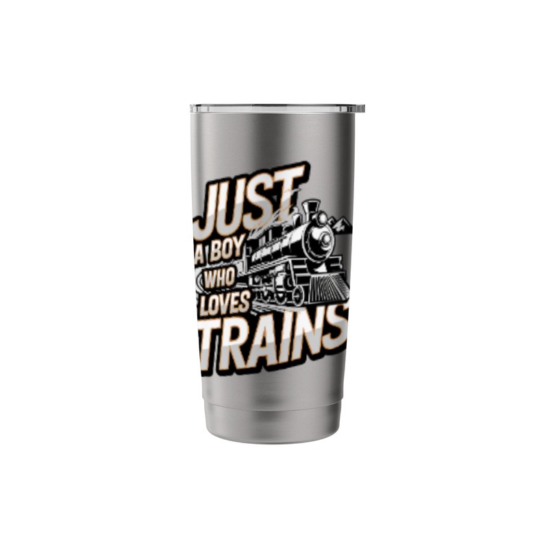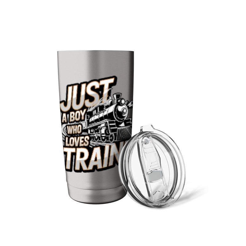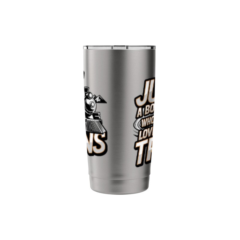 Just a Boy Who Loves Trains Funny Retro Steam Engine Stainless Steel Insulated Tumbler