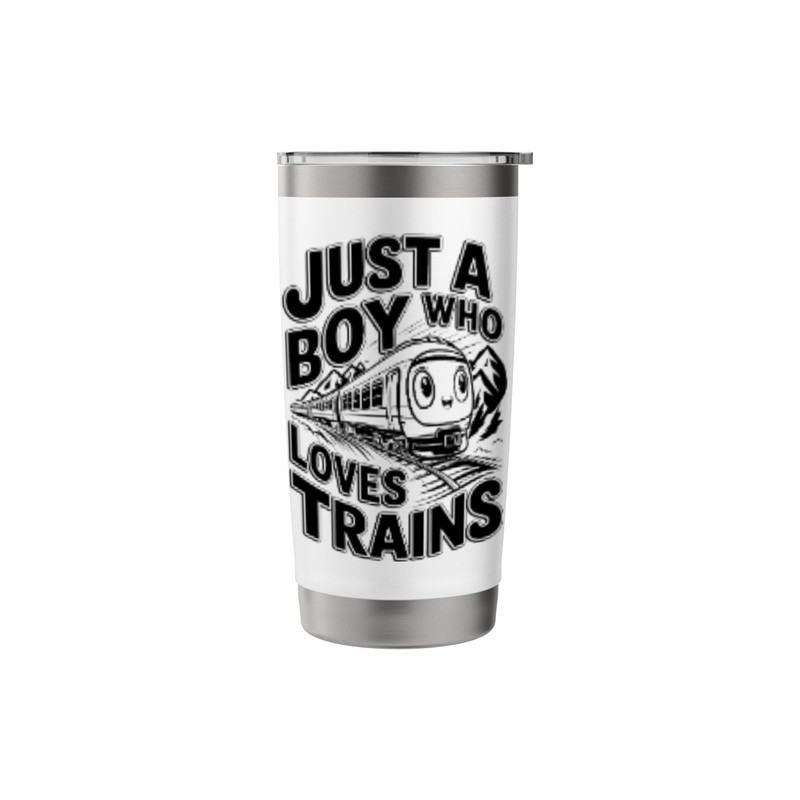 Just a Boy Who Loves Trains Funny Retro Steam Engine Stainless Steel Insulated Tumbler