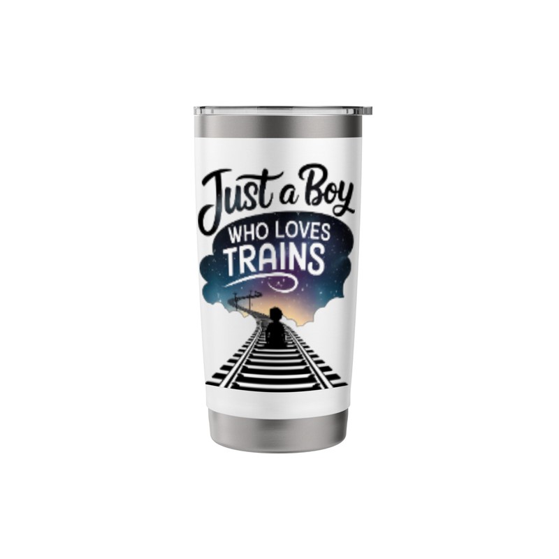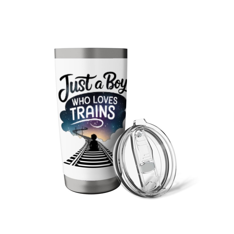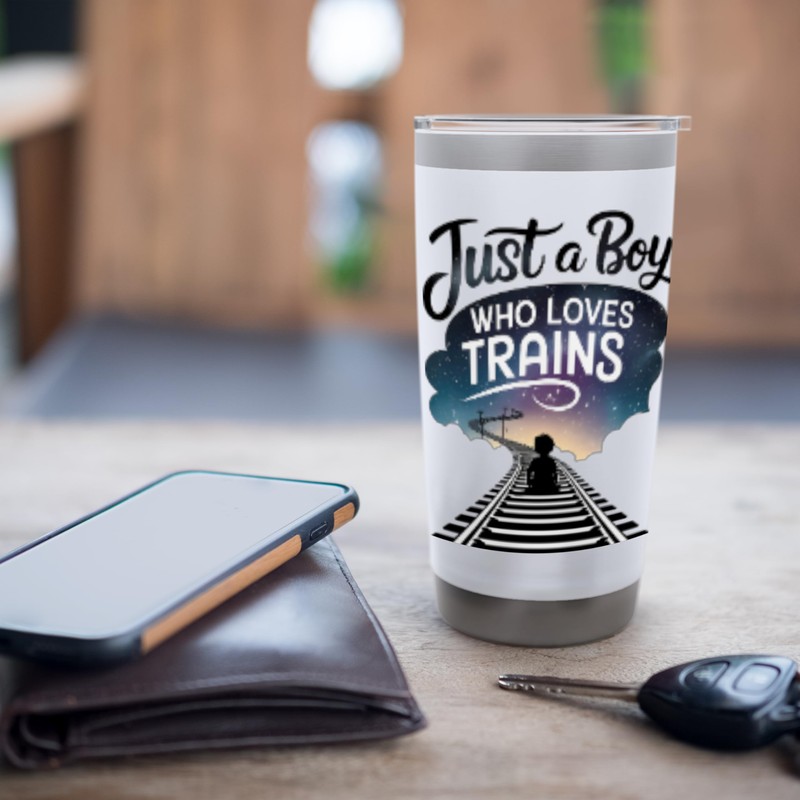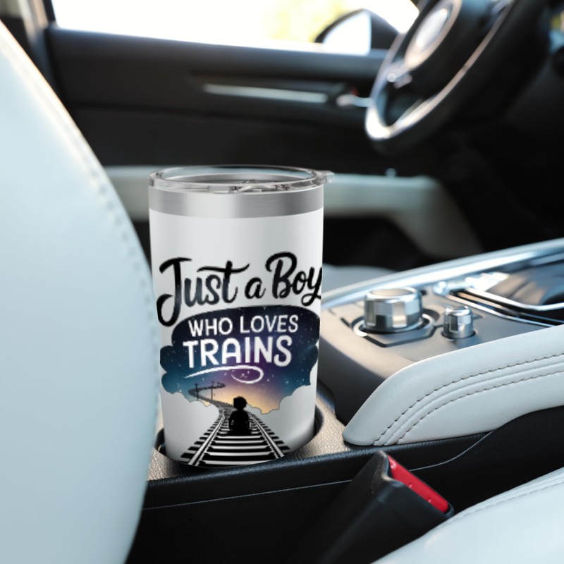 Just a Boy Who Loves Trains Funny Retro Steam Engine Stainless Steel Insulated Tumbler