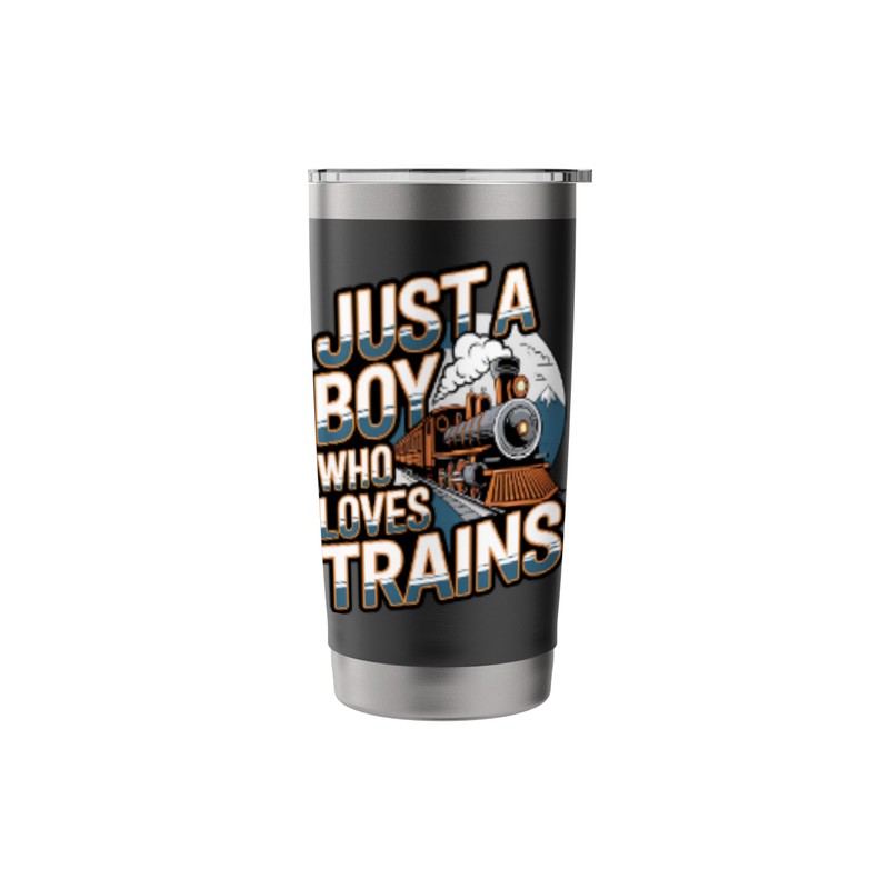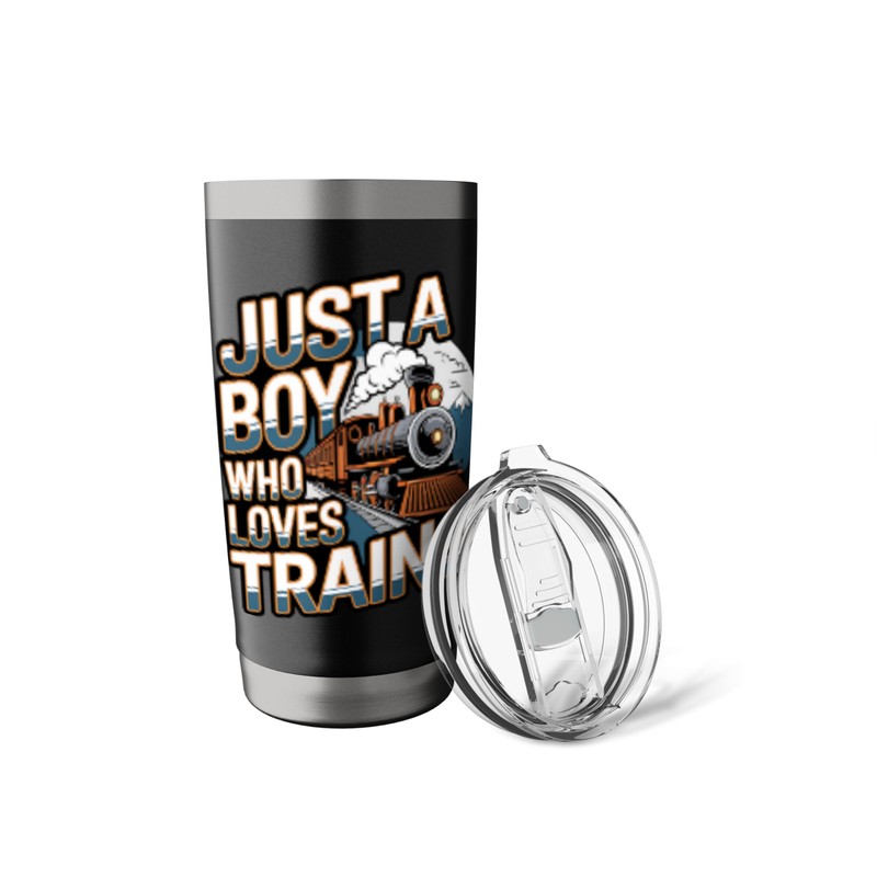 Just a Boy Who Loves Trains Funny Retro Steam Engine Stainless Steel Insulated Tumbler