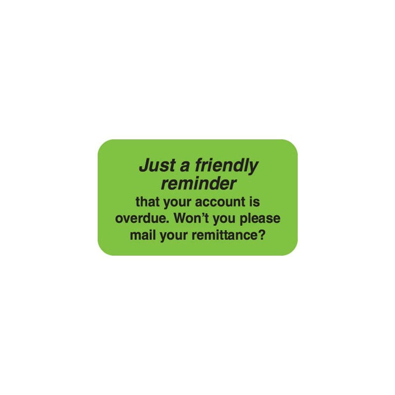 Just a Friendly Reminder Overdue Account Stickers, Doctor Stuff Billing & Collection Labels for Veterinary Offices, Fluorescent Green & Black, 250 Labels/Roll, 1-1/2” x 7/8” – Dispenser Box Included