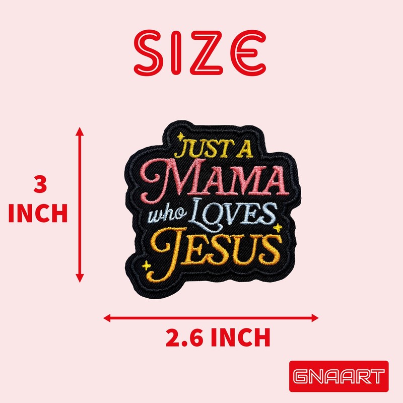Just A Mama Who Loves Jesus Patch 3 Inches Funny Christian, Religious, Bible Verse Humor Iron On/Sew On Embroidery Fabric Applique Patches for Trucker Hats Clothes Backpack DIY Accessories Mom Gifts