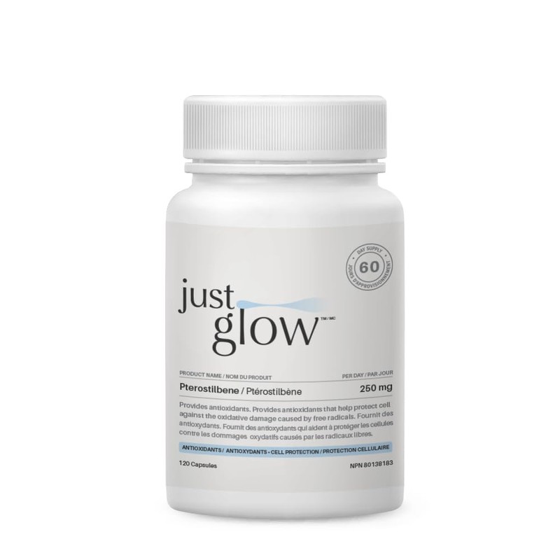 Just Glow Pterostilbene Supplement 250mg per Serving, 120 Vegetarian Capsules – Superior to Resveratrol, Third Party Tested Antioxidant for Longevity Support – Made in Canada