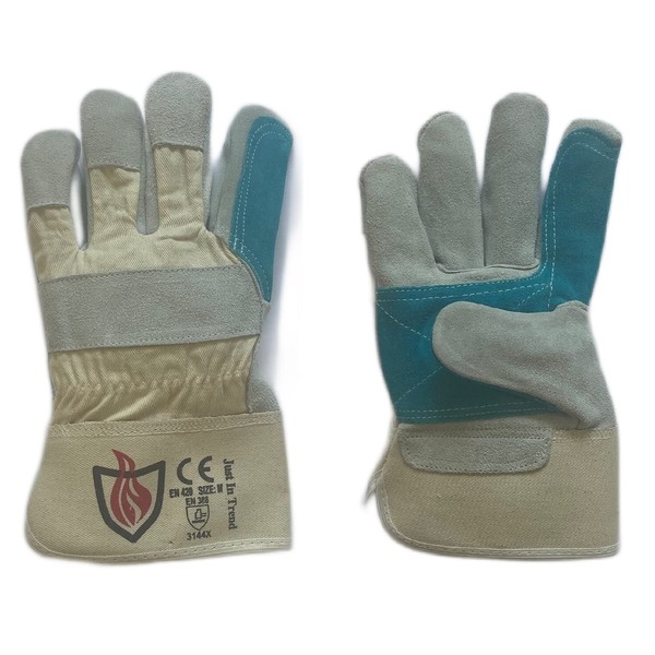 Just In Trend Split leather safety work gloves - Green - Medium - 2 Pairs PACK
