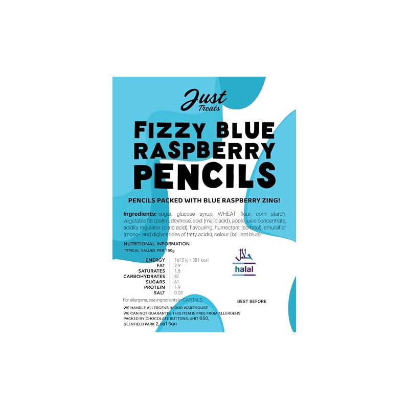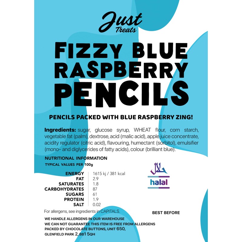Just Treats Fizzy Blue Raspberry Pencils (500g Share Bag)