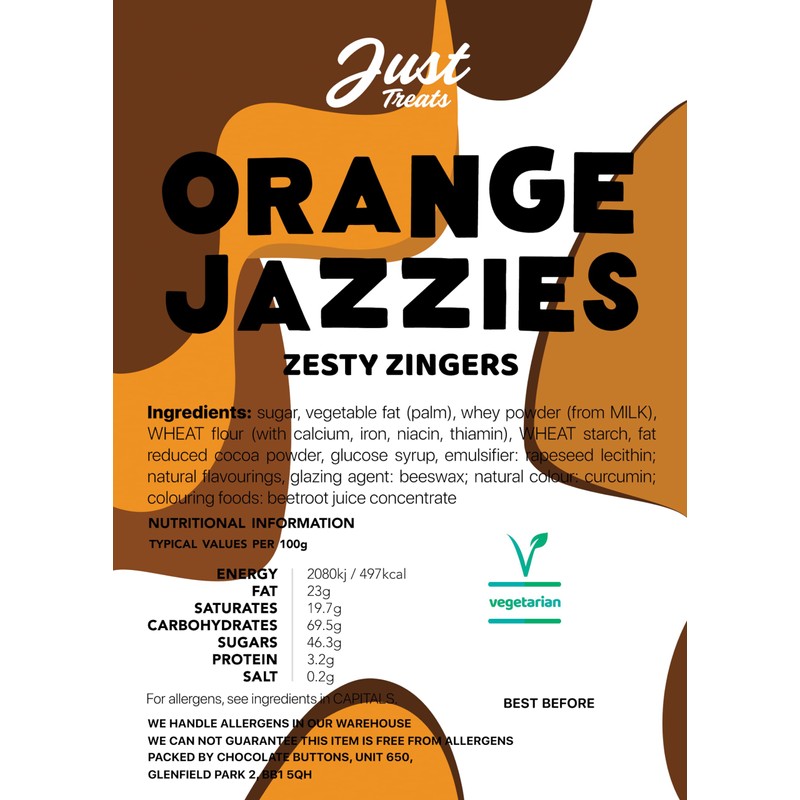 • Orange Jazzies - Orange Jazzies are a delightful harmony of orange chocolate flavour and a sweet, jazzy candy topping.