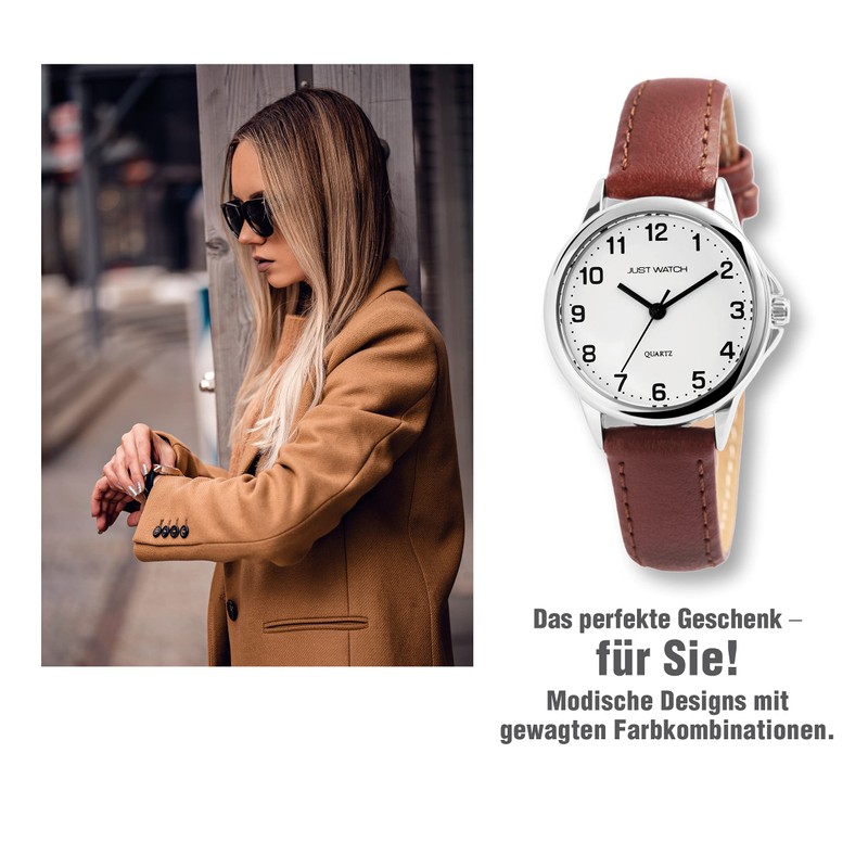 Just Watch Brigitt JW10169 Women's Watch Genuine Leather Classic Elegant Analogue Quartz, brown, Strap.