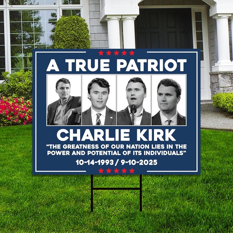 Justice for Charlie Yard Sign, A True Patriot Charlie Kirk Lawn Display, Political, Conservative Statement Yard Sign with Metal H-Stake (Multicolor, 24" x 18", Double Sided)