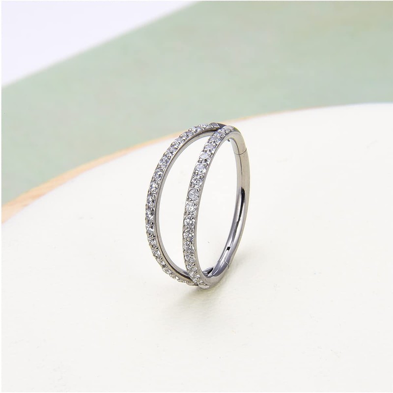 - DOUBLE OPEN STACK NOSE RING WITH CZ- Double stacked design full inlaid with AAAA sparkling cubic zirconia, it will make your piercing look more eye-catching and charming look