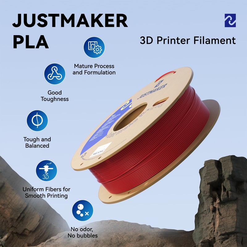JUSTMAKER PLA 3D Printer Filament, Upgrade Cardboard Spool, Print with Most 3D Printers, Dimensional Accuracy +/-0.03mm, 1.75mm, 1kg, Brown