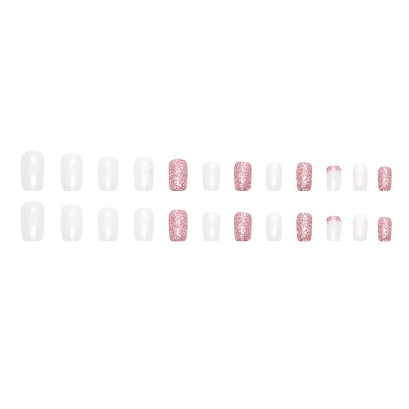 JUSTOTRY Pack of 24 Rose Glitter Press On Nails Square Medium, Milky French Artificial Nails, Beautiful False Nails for Sticking, Acrylic Square Fingernails Fake Nails Short for Women