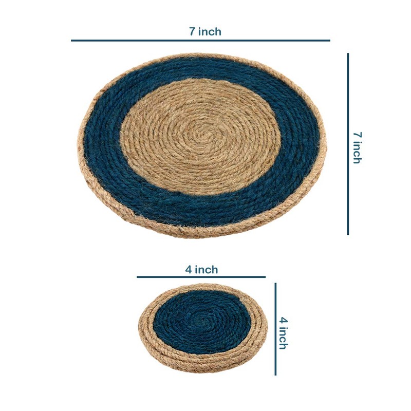 Jute Blue Coaster C05, Handmade Coaster Set, Round Design Coasters C05