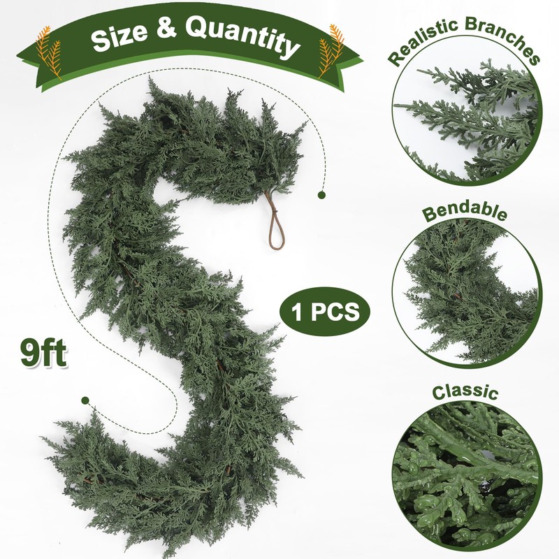 - Length for Impact: With a 9-foot length, this cedar pine garland provides ample coverage for highlighting focal points throughout your home, making it an ideal choice for holiday events, photo backdrops, or seasonal window frames