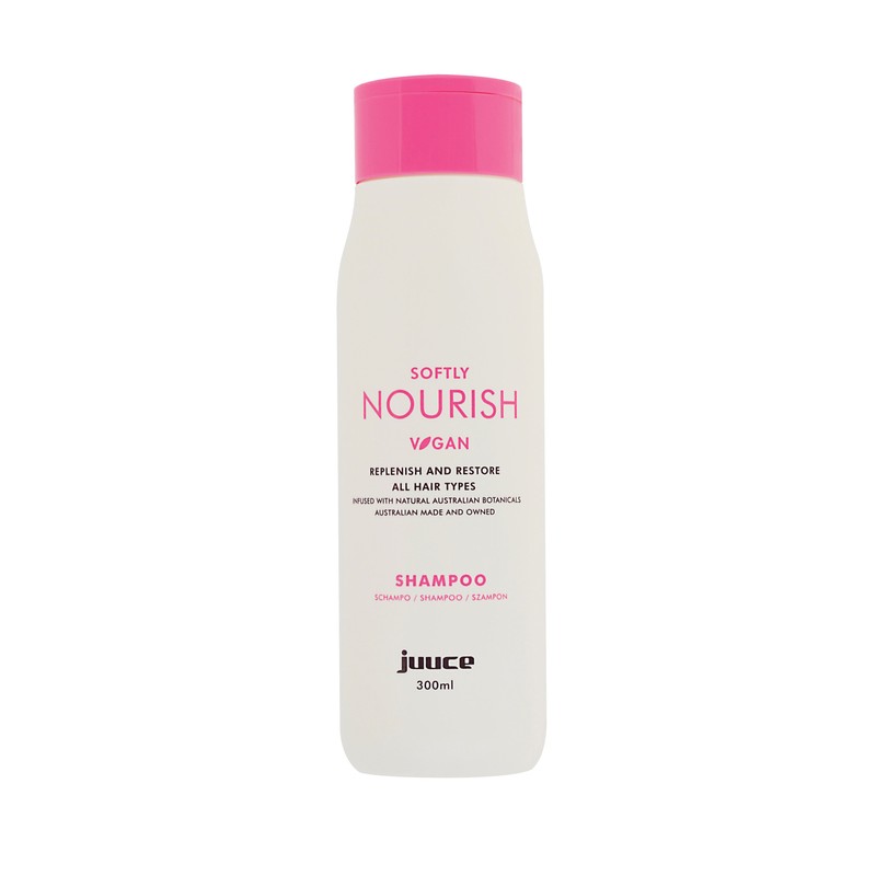 - Rinse the shampoo out thoroughly with lukewarm water, and for optimal results, follow with JUUCE Softly Nourish Conditioner 300ml to maximize the nourishing effects.