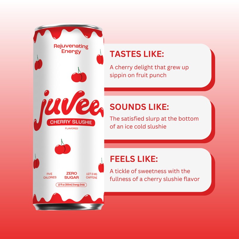 - Play Is In Our DNA: At Juvee, we believe that "Just for the fun of it" is the best reason for doing anything. We are all about rejuvenation and challenging the way energy drinks are "supposed" to behave. While they push performance and living on the edge, Juvee is all about inspiring everyone everywhere to find play in their everyday. It's as unique as you are and inviting to all. Up your energy. Lift your mood. Power your play. Try Juvee today and tell us how you feel.
