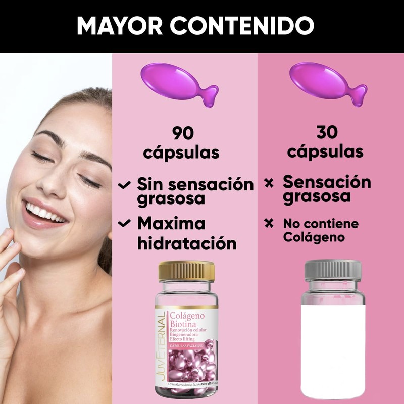 Juveternal| Cápsulas Faciales Colageno Biotina | 2x1 | 90 cáps c/u|Efecto lifting|Biogenerador|