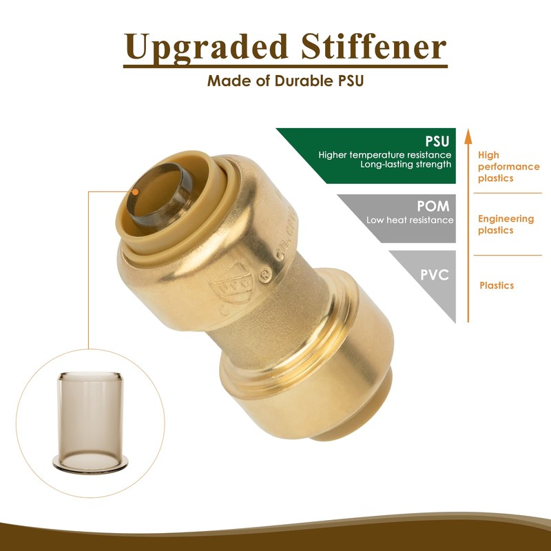 - Safe for Use NSF certified brass and food-grade PSU stiffener meet potable water plumbing standards.