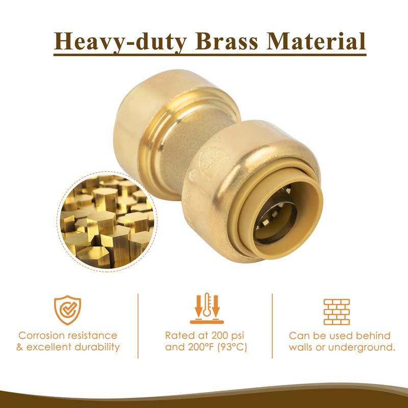 JUWO JUWO 12 Pack 1/2" Pushfit Straing Coupling, Pex Fitting for Copper, CPVC Pipe, Brass Push to Connect Plumbing Fitting with Upgraded Stiffener