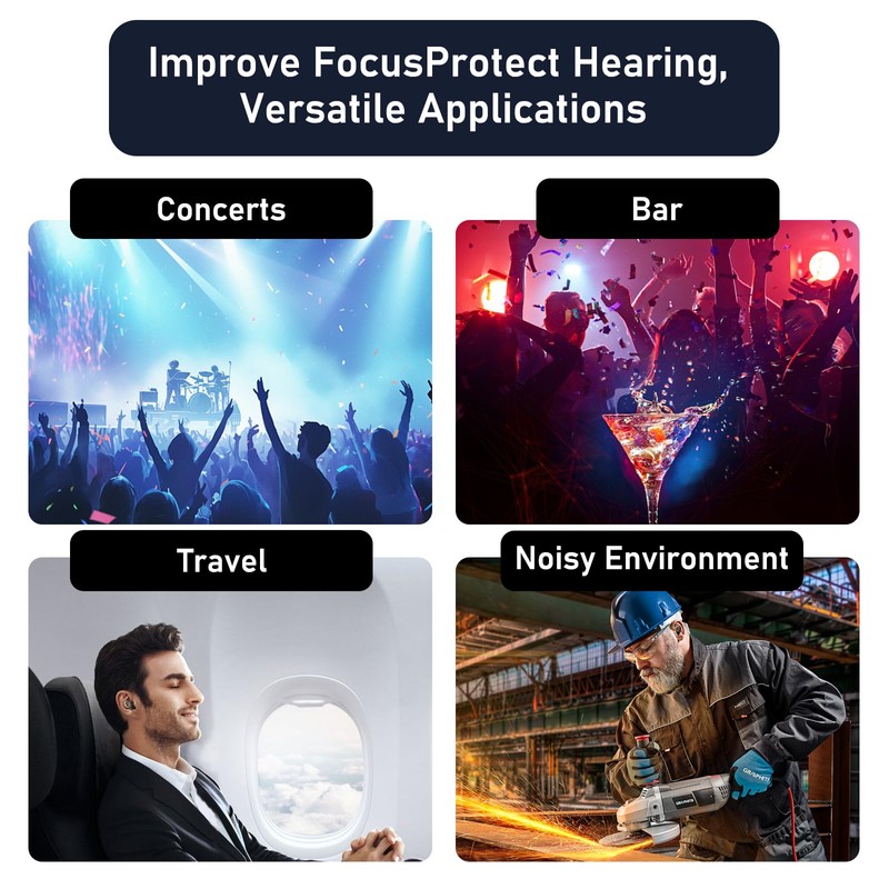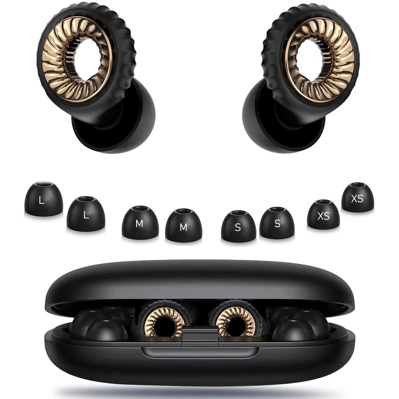 - Always Find Your Fit:Incredibly lightweight, the ear plugs create almost no sensation of weight, comes with 2 pair earplugs heads, 4 sets of soft silicone eartips (XS, S, M, and L), Simply slip the earplugs into your ears, twist to secure, and adjust to your ears, delivering a custom-tailored experience for everyone.
