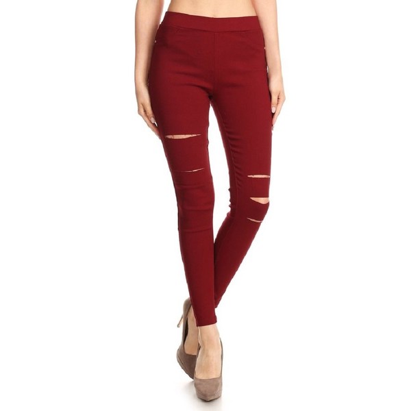 Jvini Women's Pull-On Ripped Distressed Stretch Legging Pants Denim Jean (Large, Burgundy)