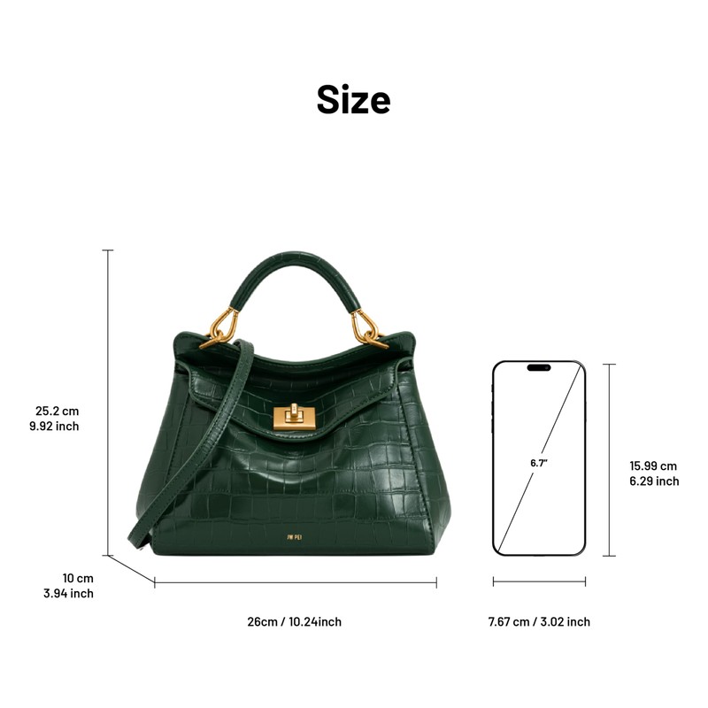 • 10.24" W × 6.5" H × 3.94" D (26cm x 16.5cm x 10cm) Handle Drop: 2.76" (7cm)