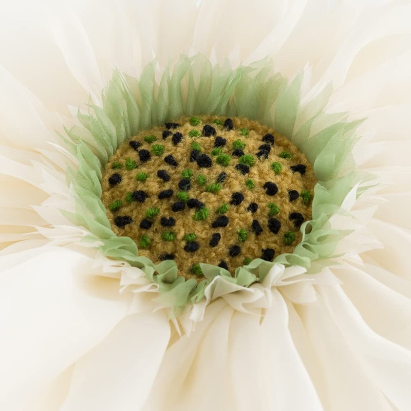 JWH Stereo Flower Handmade Throw Pillow Cover Decorative Sunflower Accent Pillow Case Round Cushion Beige Pillowcase Bedroom Bed Couch Car 12 Inch Cream White Green