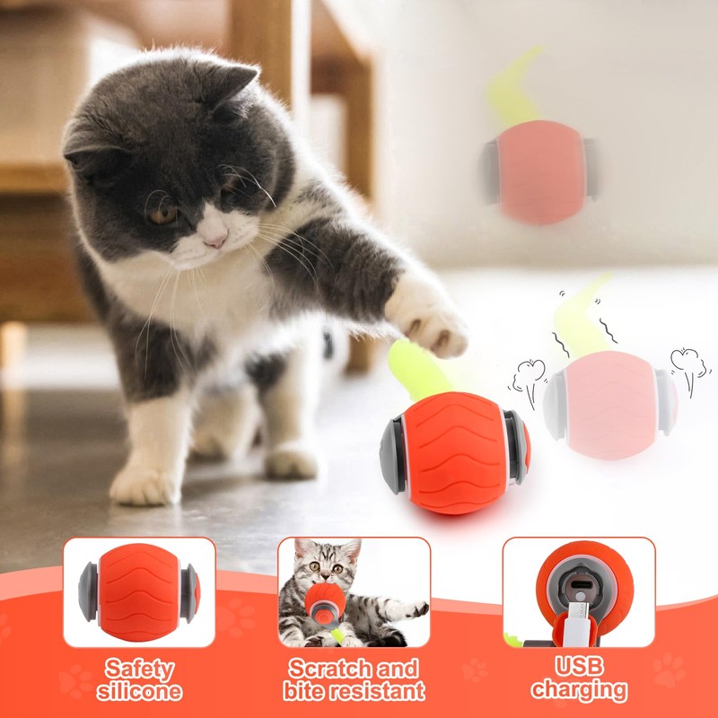 jwogngls Electric Cat Toy Ball, Magic Ball Dog with Tail, 360° Smart Interactive Play Ball for Cats, Interactive Dog Toy Ball with USB Rechargeable for Cats and Dogs (Orange)