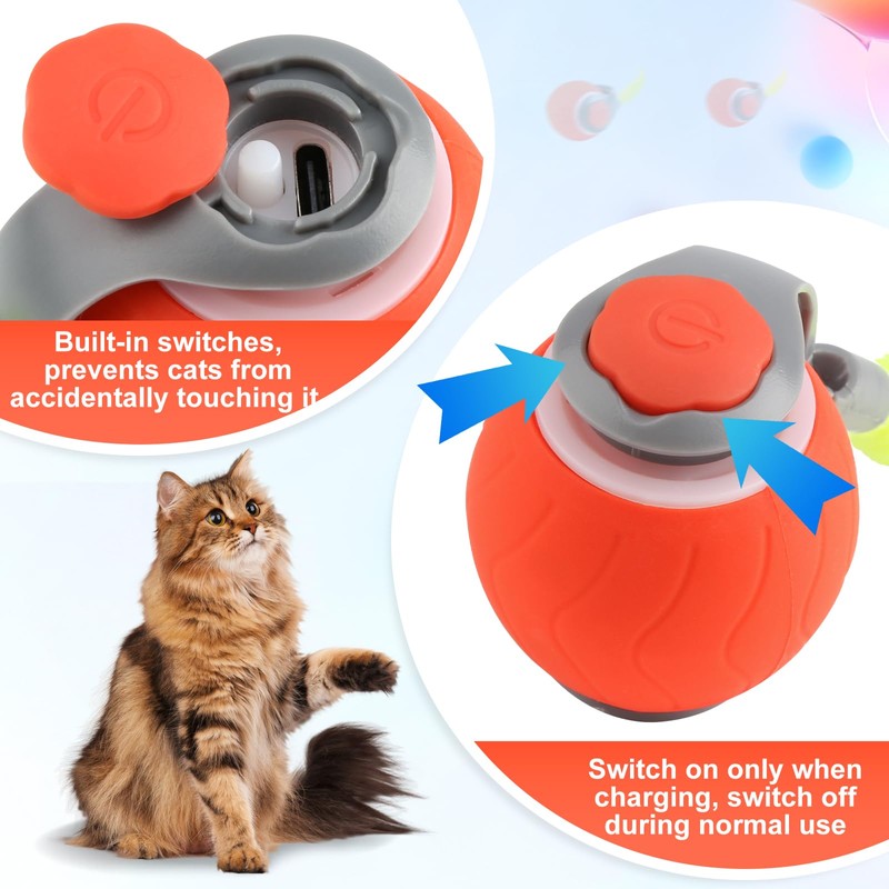 - Type-C charging: the cat ball electric is charged via Type-C, no need to replace the battery, get rid of battery fear. Built-in 150 mAh Li-ion ternary battery, strong battery life of 90 minutes, powerful, so that cats can play anytime and anywhere. Note: you need to press the switch (three or more than three seconds) to open the interesting cat ball