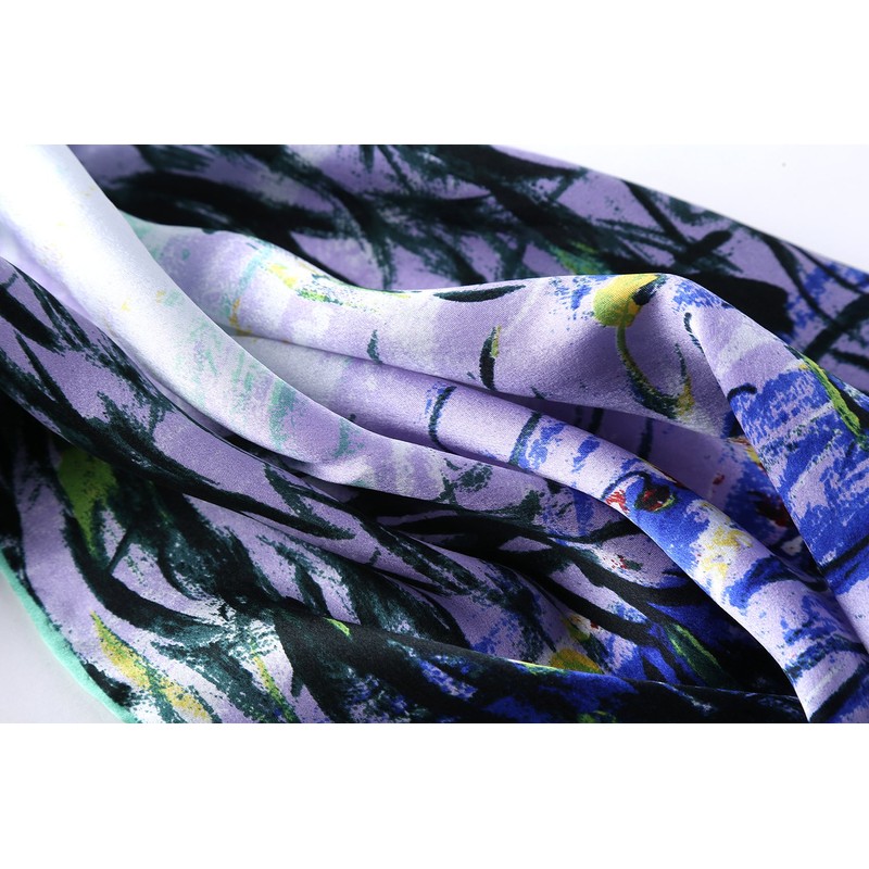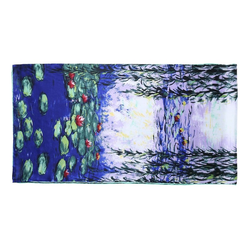 JWSilk Long Charmeuse Silk Scarf Classic Art (Waterlilies by Monet)