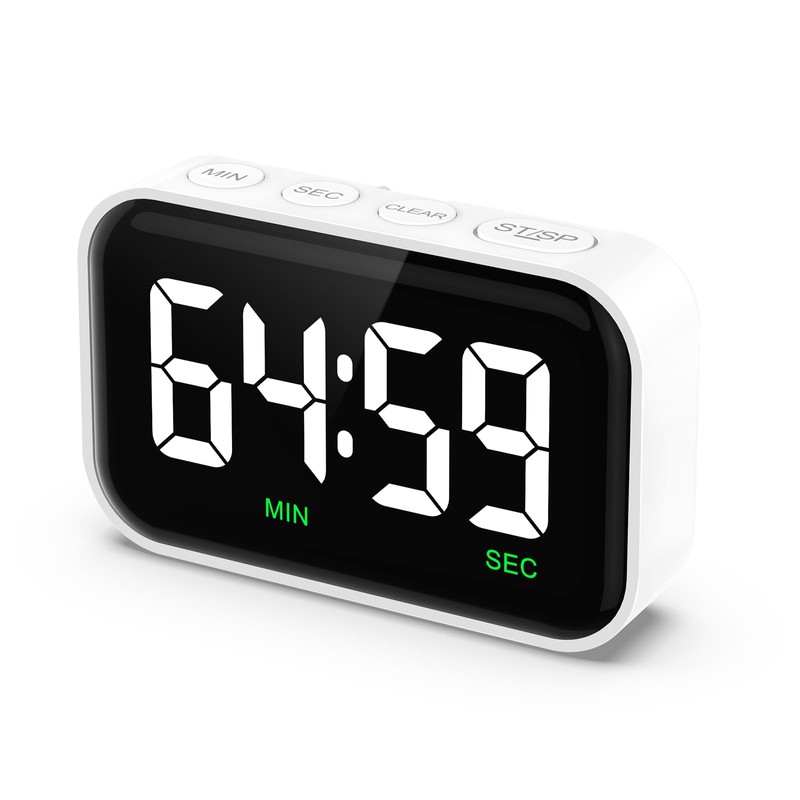 JXTZ Digital Kitchen Timer for Cooking, Magnetic Countdown Countup Timer with Large LED Display, Digital Timer Battery Powered Adjustable Brightness & Volume, for Cooking, Class, Study, Sport, White