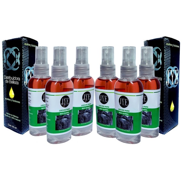 JYE Set de 6 Frascos Locion Crecimiento de Barba bergamota extra fuerte, Presentación 60 ml por botella
