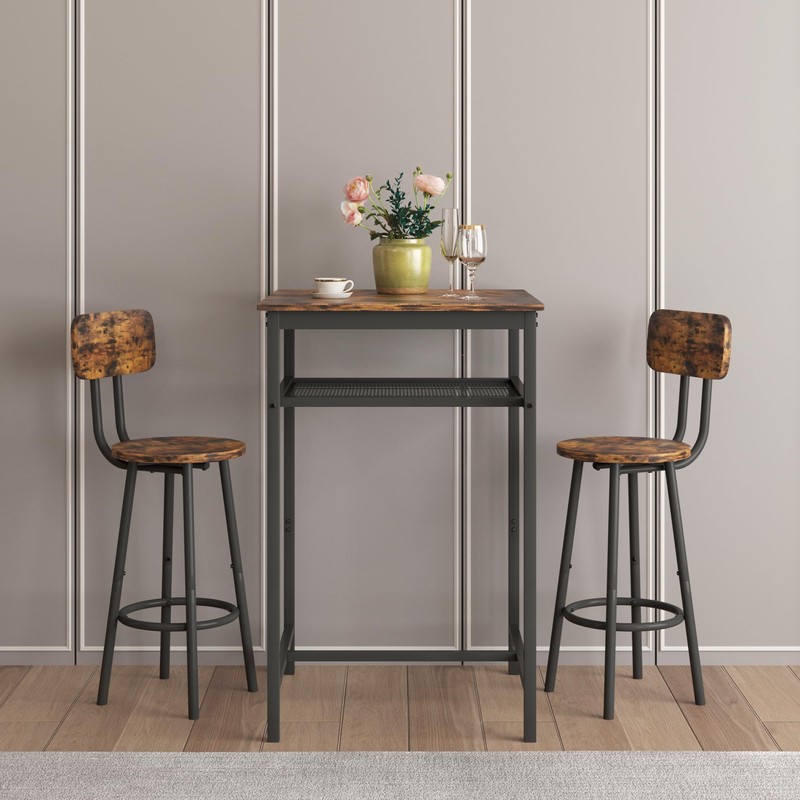 JYH Small Bar Table Set for 2 - Dining Table Set and 2 Bar Stools with Backrest and Partition, Square Bar Table with Stools for Kitchen, Apartment, Small Space, Rustic Brown