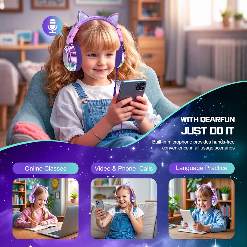 - Cute and stylish design: designed with a pair of cute cat ears and a unicorn horn, these headphones are ideal for toddlers aged 3 and up and a perfect gift for girls who love kittens and unicorns. Together with the fashionable metallic look, children will be amazed by these children's headphones