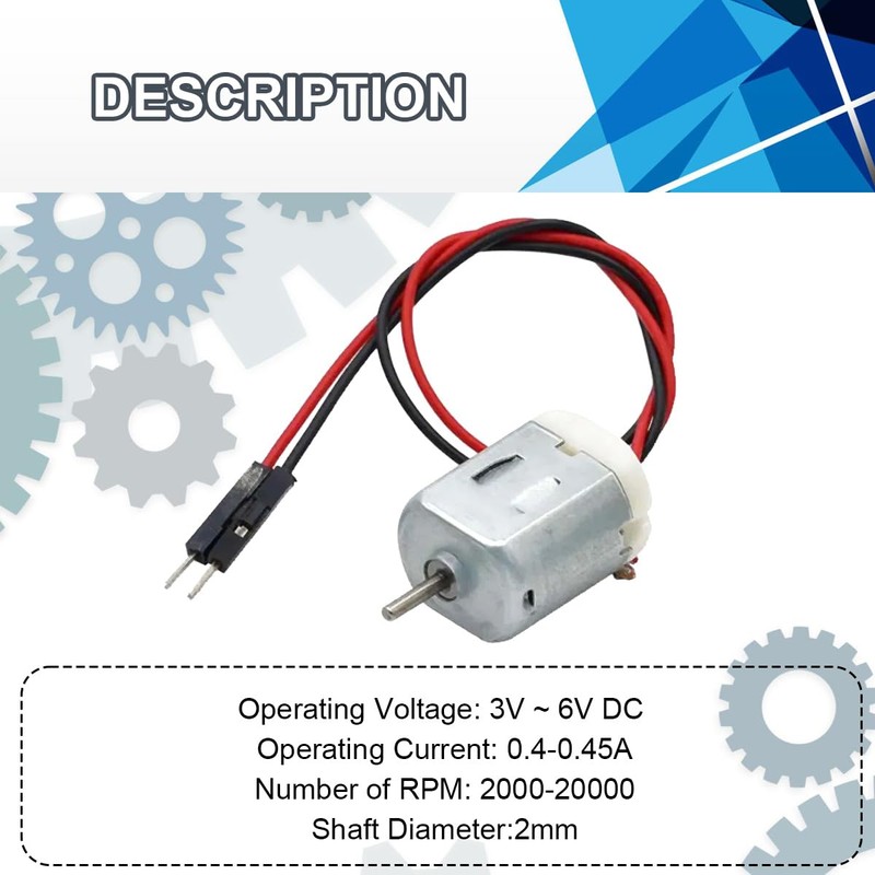 - 【Operating Parameters】Operating Voltage: 3V ~ 6V DC ; Operating Current: 0.4-0.45A; Number of RPM: 2000-20000