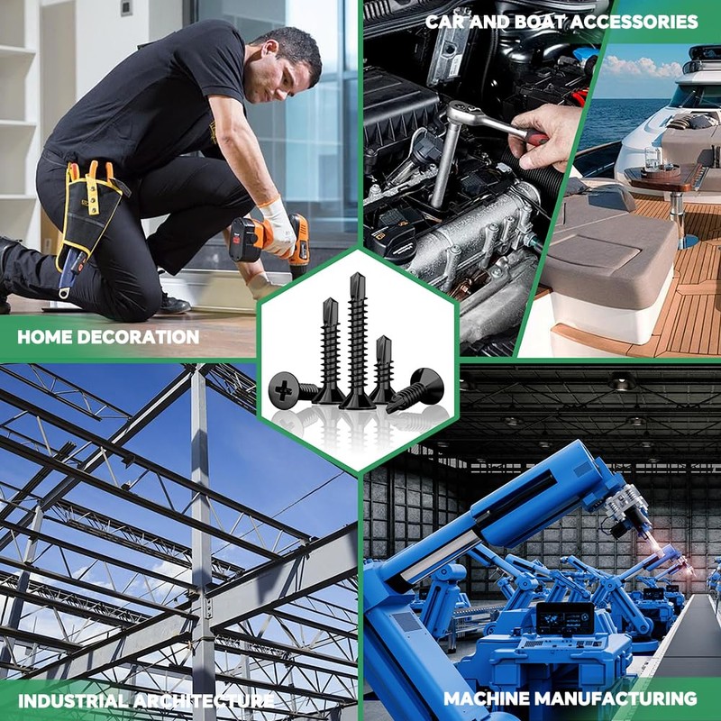 - Widely used: Black self tapping screws are essential for construction, plasterboard, wood cladding, drywalls, metal panels, stairs, indoor applications, terraces, and wood screws applications