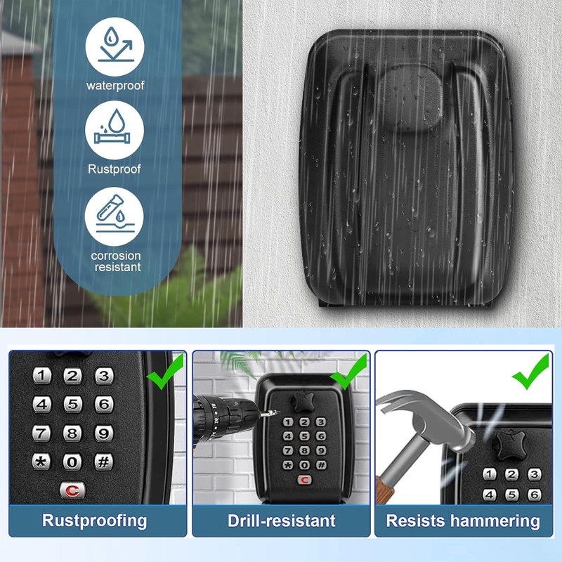 • 【12-Digit Combination Code】:Jyvlucient key safe lock box uses a 4-12 digit multi combination to ensure robust protection. It's crucial to bear in mind that after each password reset, you must securely photograph or record your code to prevent forgetting.