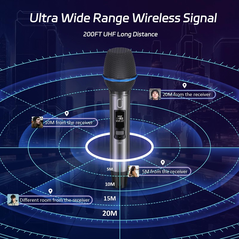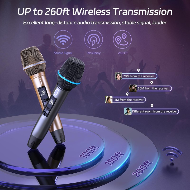 - 【Transmisión Inalámbrica UHF de 80 m (260 ft)】Ofreciendo captación de voz precisa, tecnología anti-silbidos y transmisión de sonido clara, los micrófonos inalámbricos JYX tienen un alcance de hasta 80 metros (260 pies). Perfectos para discursos, actuaciones, presentaciones en solitario, reuniones, bodas, servicios religiosos y karaoke, garantizan que tu voz siempre se escuche clara y fuerte.