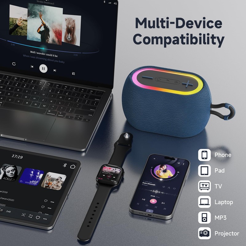 - 【Lightweight and Portable】Whether you use it at home or when traveling, it can easily fit into your backpack or handbag for convenient use anywhere. The design of the speaker not only focuses on a stylish appearance, but also ensures that its weight and size are optimized to provide users with a convenient use experience. Therefore, this speaker is especially suitable for those who like outdoor activities, traveling or often need to use audio equipment on the move.